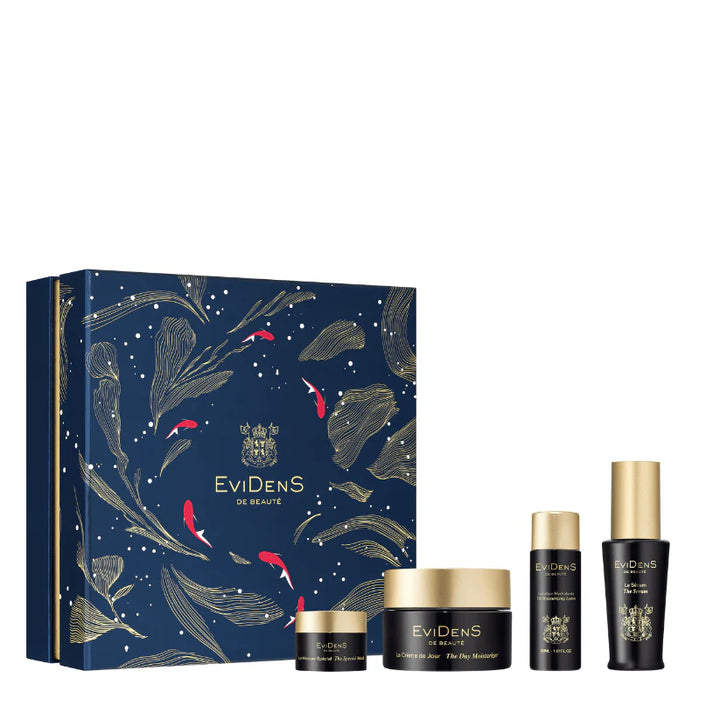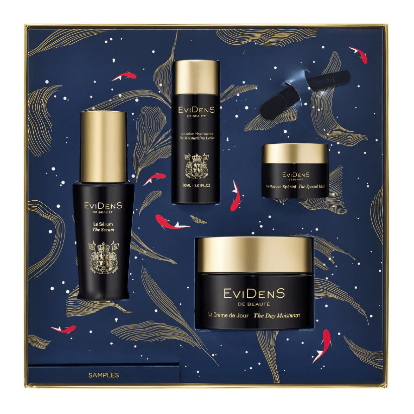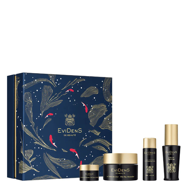 De set bevat vier iconische producten uit de EviDenS de Beauté-lijn: