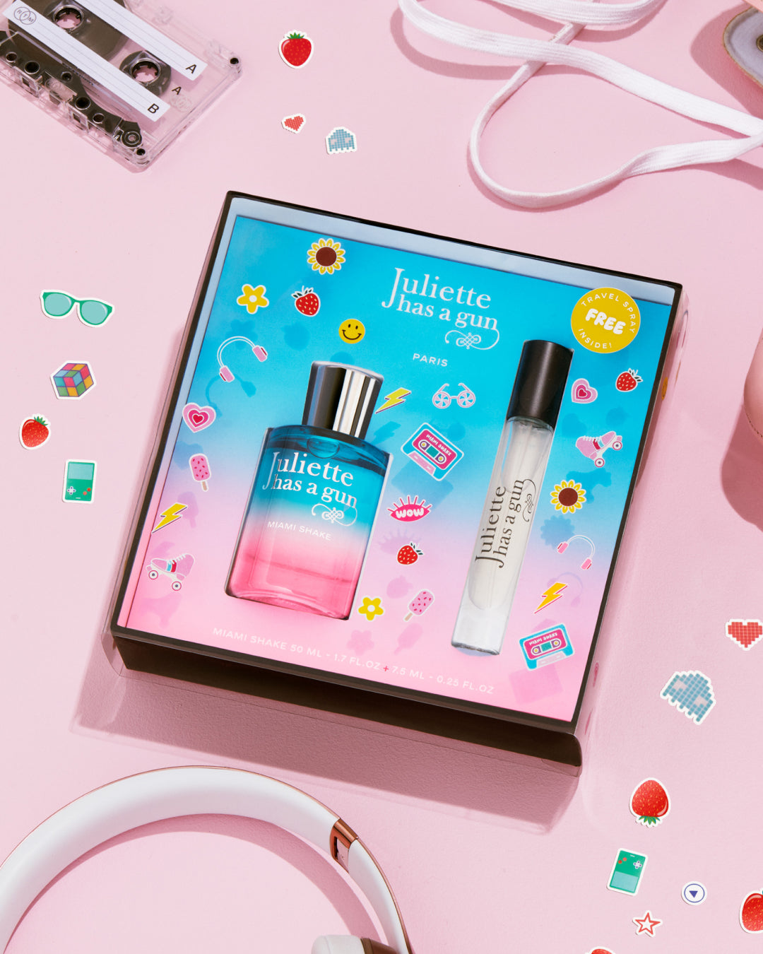 Miami Shake is Juliette Has a Gun 's first true gourmand creation , a fragrance that exudes pure seduction. Inspired by the vibrant atmosphere of Miami, this fragrance offers a playful and sensual experience. The fresh, fruity top notes of wild strawberries blend perfectly with a creamy heart of whipped cream and ice cream. The base of vanilla and creamy musk creates a long-lasting, irresistible trail. This perfume is bold, playful, and irresistibly seductive—just like Juliette herself.