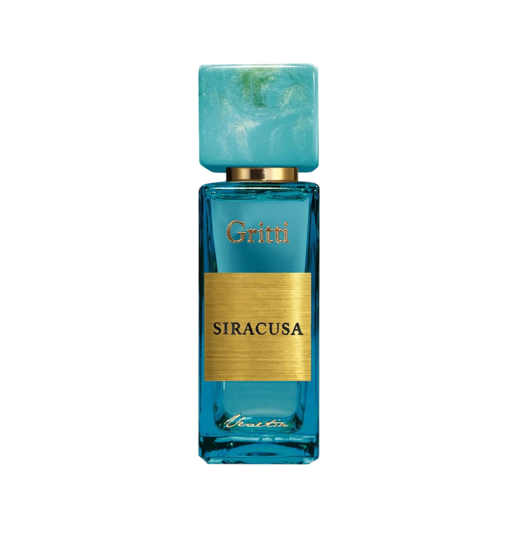 Gritti Siracusa embodies the sunny elegance of the Italian coast. The luxurious, handcrafted bottle, with its wavy turquoise and gold patterns, reflects the beauty of the Mediterranean, making this fragrance a true work of art.