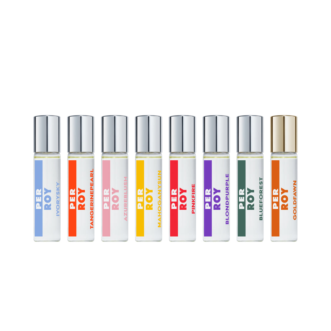 De Perroy Mood Palette bevat acht unieke parfums die samen het volledige spectrum van geurbeleving omvatten — van frisse en florale tonen tot diepe, sensuele houtakkoorden. Elke creatie is vervaardigd met hoogwaardige essences en getuigt van het vakmanschap waar Perroy om bekendstaat. De zorgvuldig ontworpen mini-flacons laten je moeiteloos schakelen tussen verschillende stijlen en sferen.
